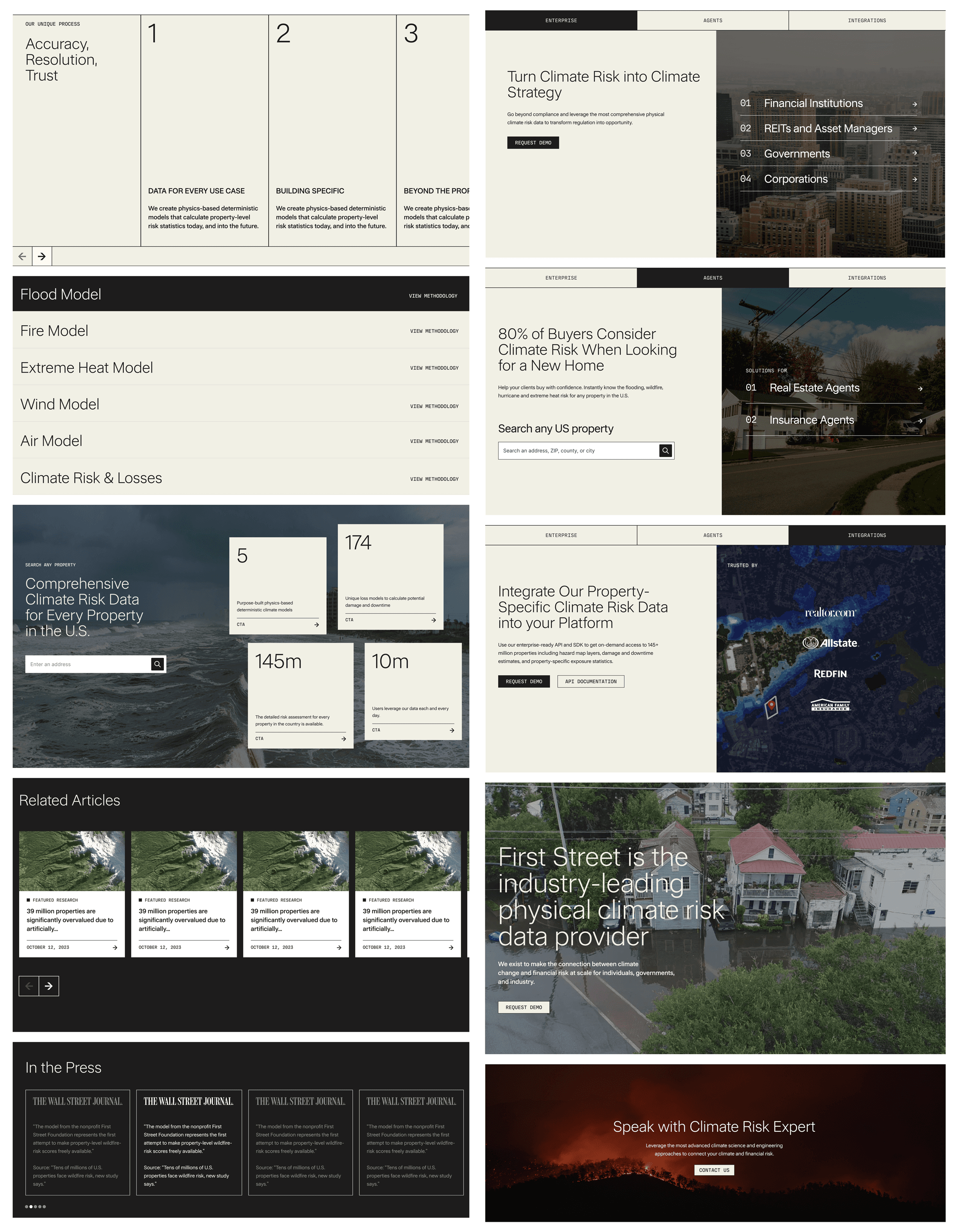 This work focused on aligning visual identity, product language, and interaction patterns across marketing and product surfaces, clarifying First Street as the primary brand while integrating Risk Factor as a core experience within it.